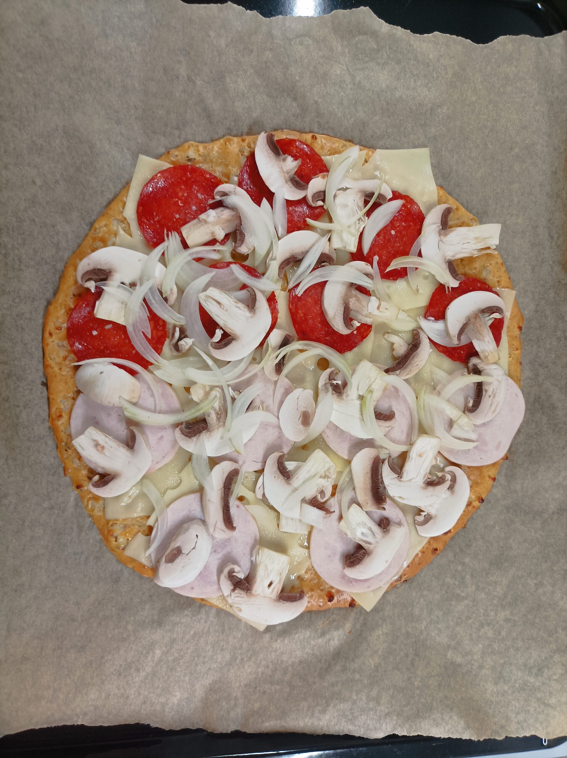 - Upieczony spód wyjąć z piekarnika, nałożyć dodatki do pizzy wg uznania, wstawić do piekarnika jeszcze na ok.6-8 minut.