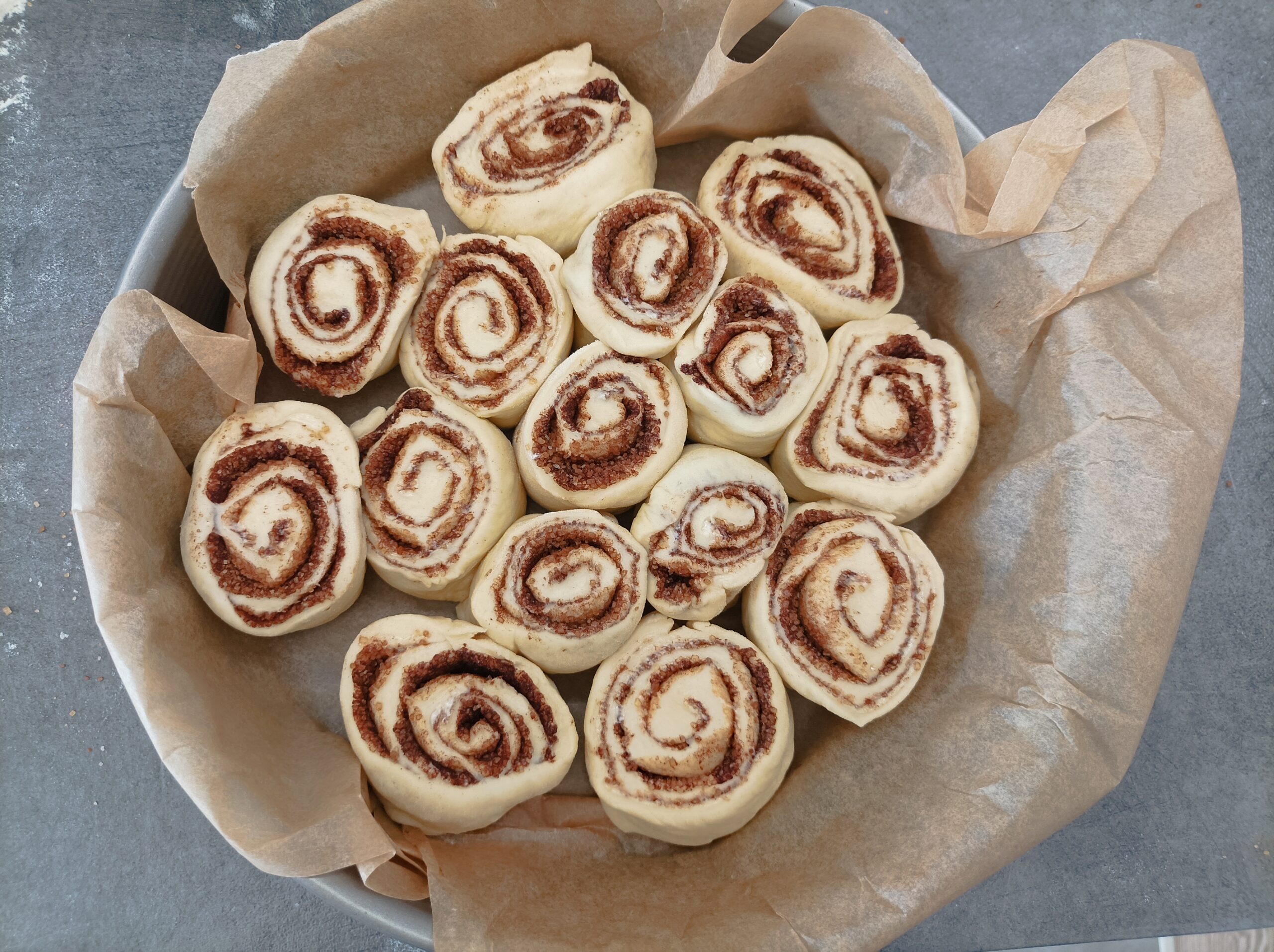 - Ślimaczki w formie przykryć ściereczką na czas nagrzewania piekarnika, do ponownego wyrośnięcia (w razie braku czasu ten krok można pominąć).