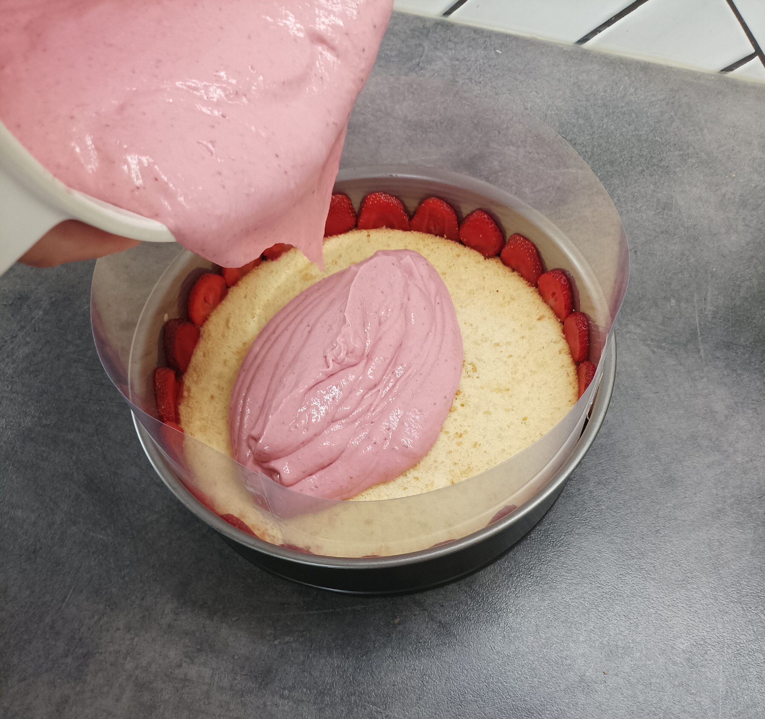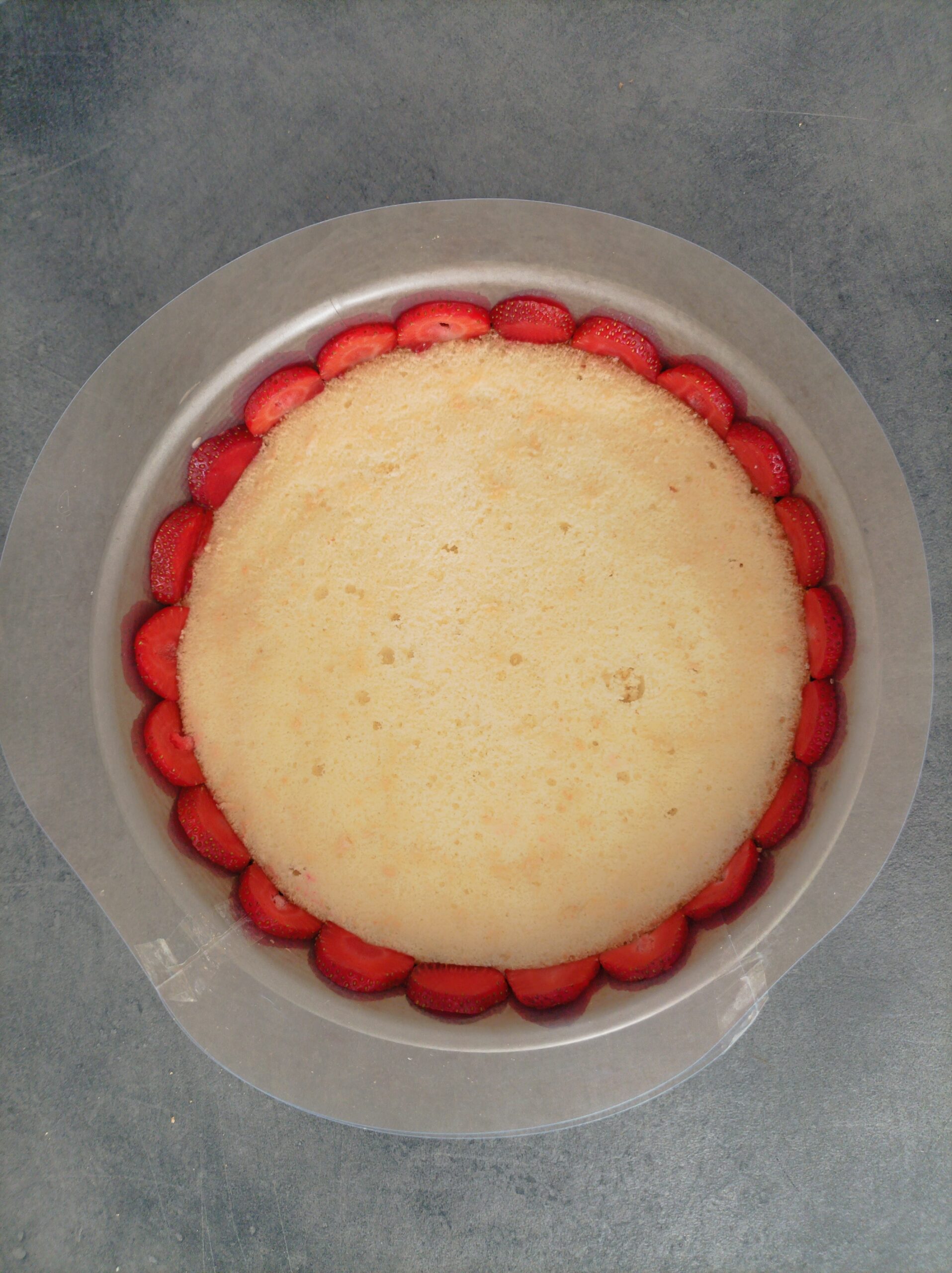 • plasterkami truskawek obłożyć bok tortownicy dookoła